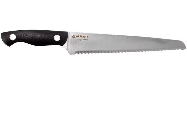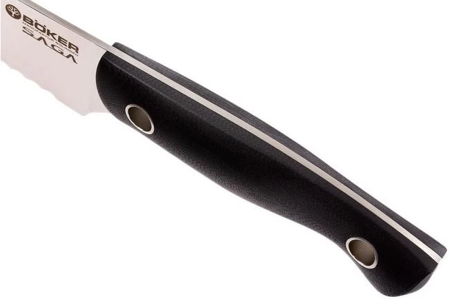 This Böker Saga bread knife is ideal for cutting bread. However, the serrated blade is also suitable for cutting hard fruits and vegetables such as melons, pumpkins and celeriac. Basically, any foods with a hard exterior. We prefer to call it a serrated knife rather than a bread knife. The two characteristic holes in the handle give this serrated knife a striking appearance.