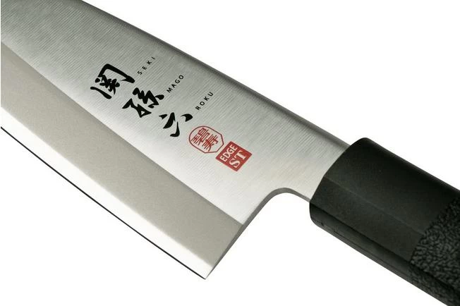 The Kai Seki Magoroku Hekiju Deba 15cm is often used as an axe in Japanese traditions, but was also designed to carry out detailed tasks. You use the front part of this heavy but stable knife for filleting, the back part for cutting bones and tendons. With its imposing blade, this knife certainly stands out in the kitchen, but it is still very pleasant to work with.
