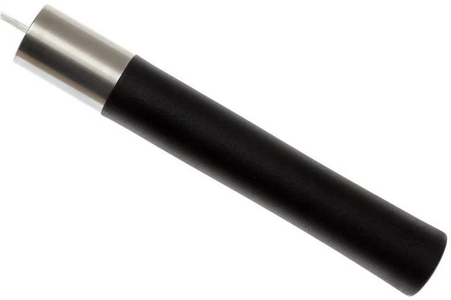 Kai is known for their high quality Kai Shun kitchen knives. The Kai Wasabi series is also gives great quality, but is a bit more affordable. The Daido 1K6 stainless steel blade is sharpened thin to a hardness of 58 HRC. Because these knives don’t have a bolster the whole edge can be used and the entire length can be sharpened. The handle is made out of a combination of bamboo powder and polypropylene. This makes it durable and waterproof.