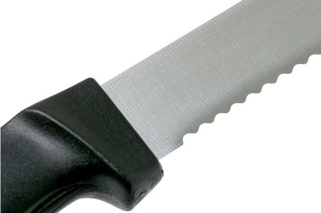 This Spyderco bread knife K01SBK is characterized by its slim, serrated blade. Thanks to the shape and the length of the blade this knife can also easily be used as a pastry knife or even as a spatula.