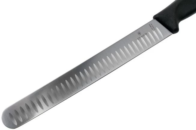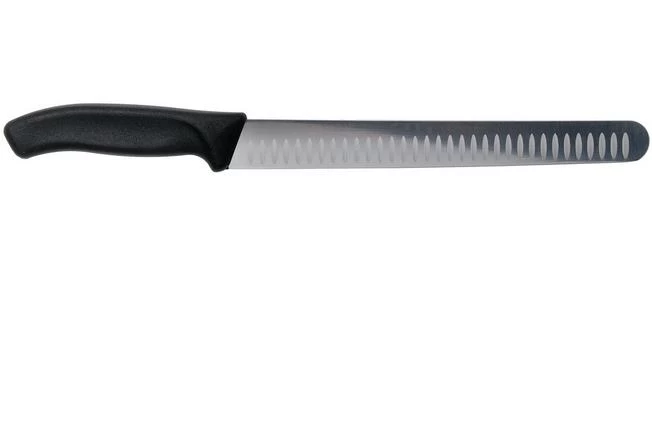 The Victorinox SwissClassic ham knife 25 cm, black is a razor-sharp knife, specifically designed to cut long and thin slices of ham. The long length of the blade ensures that you can cut through a ham with one long movement.