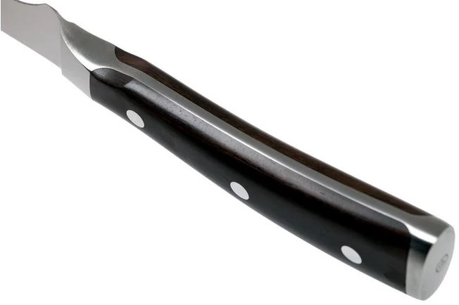 The Wüsthof Ikon boning knife 14 cm is a very thin and flexibe to make sure you can effortlessly cut through bone. The ergonomic handle provides you with enough grip, which is key when boning.