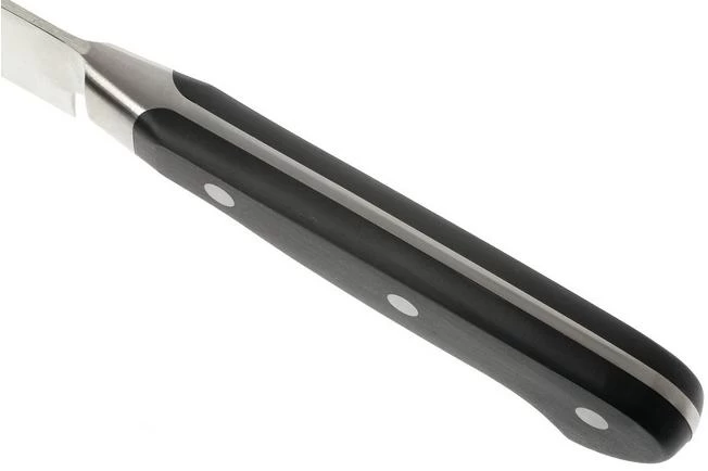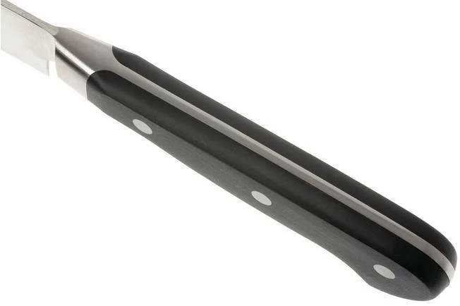 As German knives manufacturer Wüsthof has ventured to making a typical Japanese knife: the Yanagiba. Yanagiba is Japanese for ‘ Willow leaf ‘. This knife is designed for cutting fish and sushi. The long blade cuts fast through large pieces of fish. The blade has one straight and one hypotenuse. The unilateral cut is usually only applied to Japanese knives, but now also by Wusthof. With this knife you cut almost perpendicular to the cutting board. After a bit of practice, you can cut paper-thin slices.