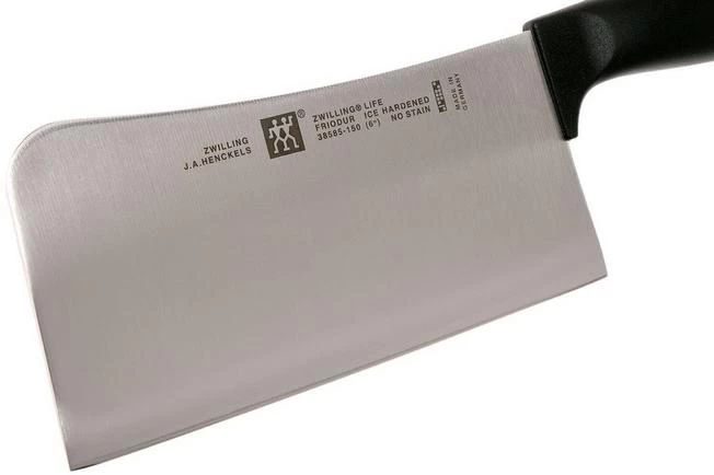 The Zwilling Life cleaver 15 cm is perfect when cutting through bones. In addition to meat this cleaver can also easily cut through hard vegetables. A cleaver is enhanced with a rectangular blade that is slightly thicker than a normal kitchen knife. It doesn’t have to be as sharp because it is used to chop with.